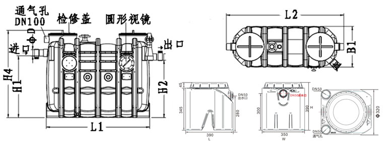 產(chǎn)品特點(diǎn):澤德油水分離器采用PE箱體 耐腐蝕 緊湊的橢圓形設(shè)計(jì) 理由油脂分離和沉降,設(shè)有圓形視鏡和檢修口等